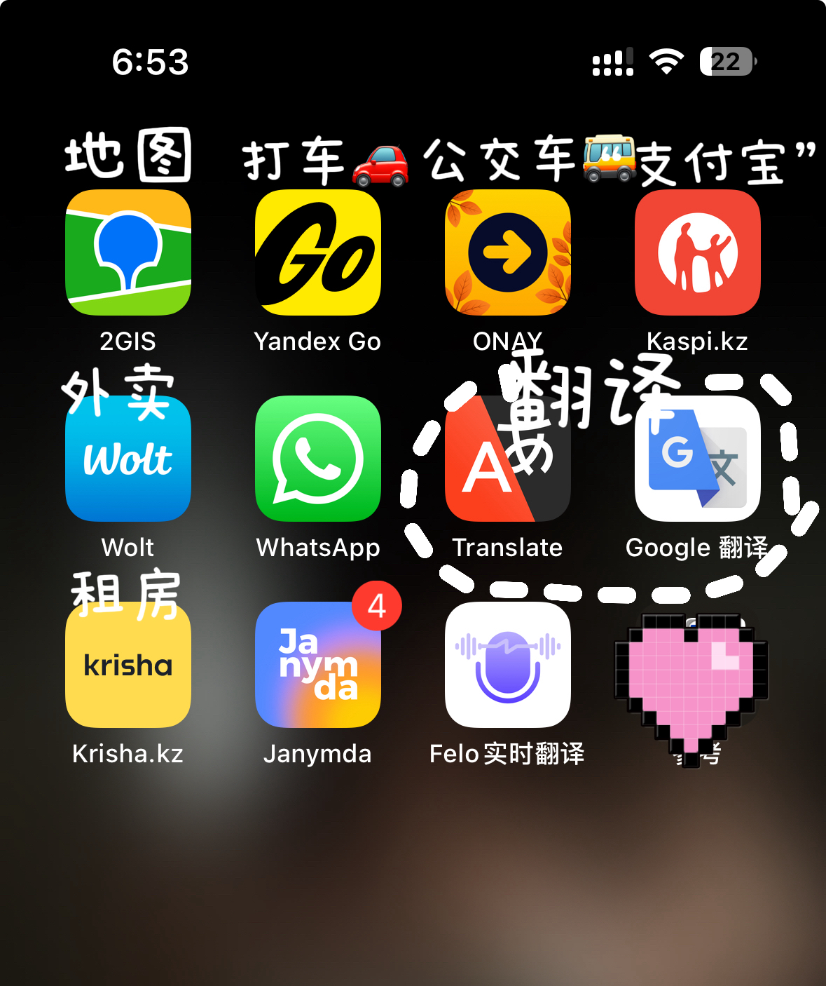 · 提前准备: 建议在出发前就下载好这些App,并尝试注册和熟悉界面。大部分App都需要哈萨克斯坦本地手机号才能完成最终注册,所以抵达后办好电话卡是第一要事。