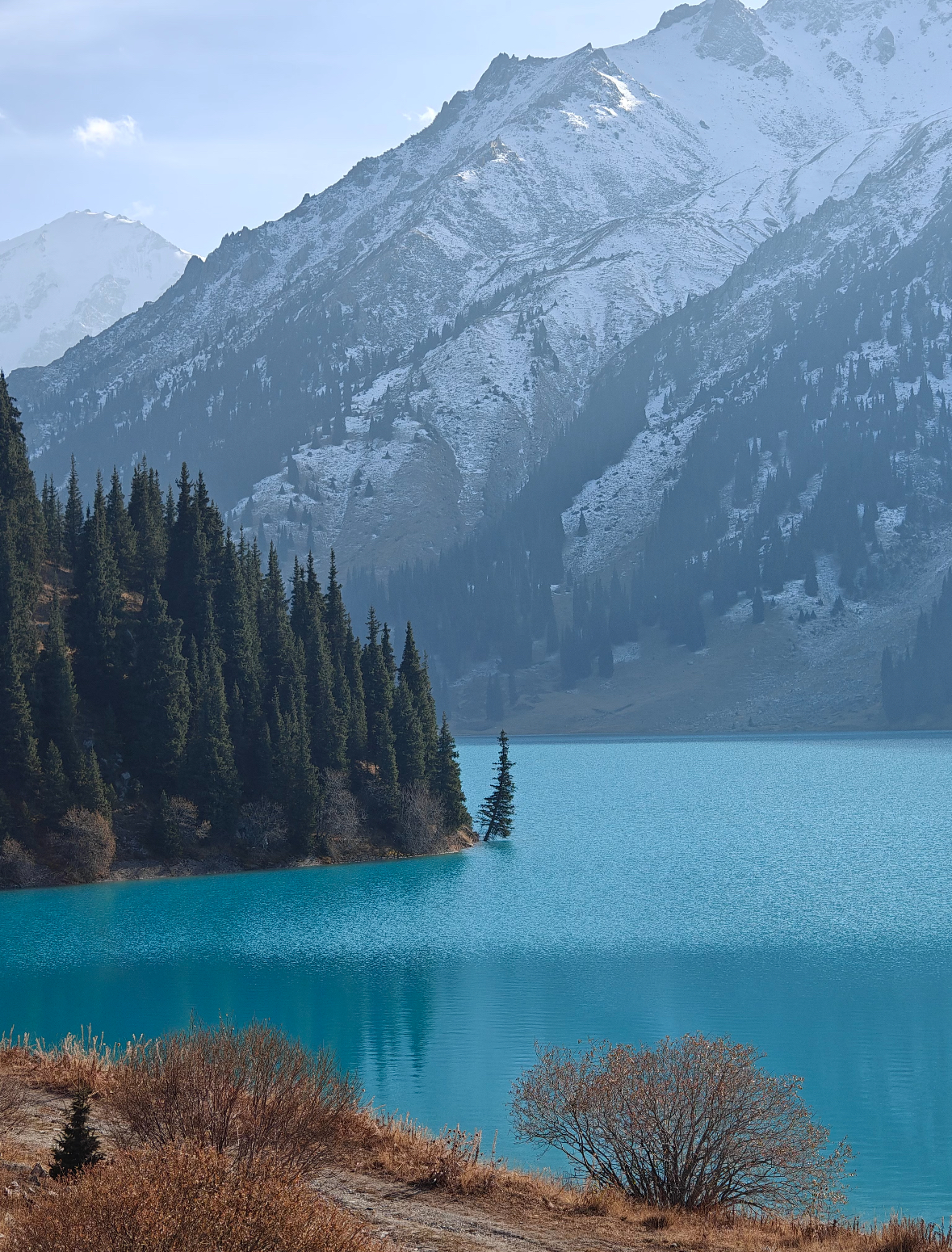 · 🗺️大阿拉木图湖: 必去! 距离市区约1小时车程。这是一个由高山冰川融水形成的湖泊,湖水颜色随光线和季节变幻,呈现出梦幻的蓝绿色,背靠雪山,景色极为震撼。